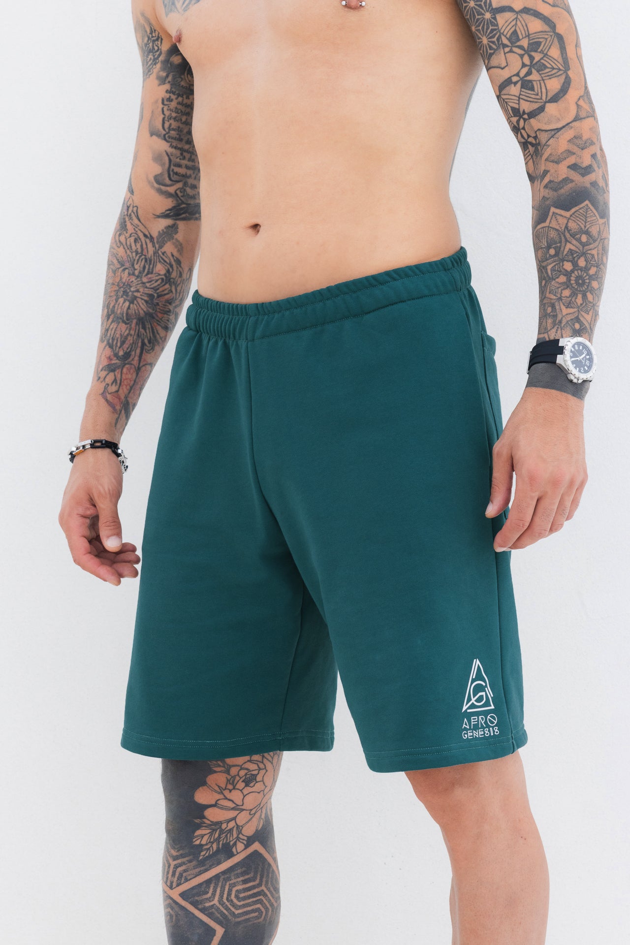 - Calções em felpa italiana petróleo, 60% algodão, 40% poliéster