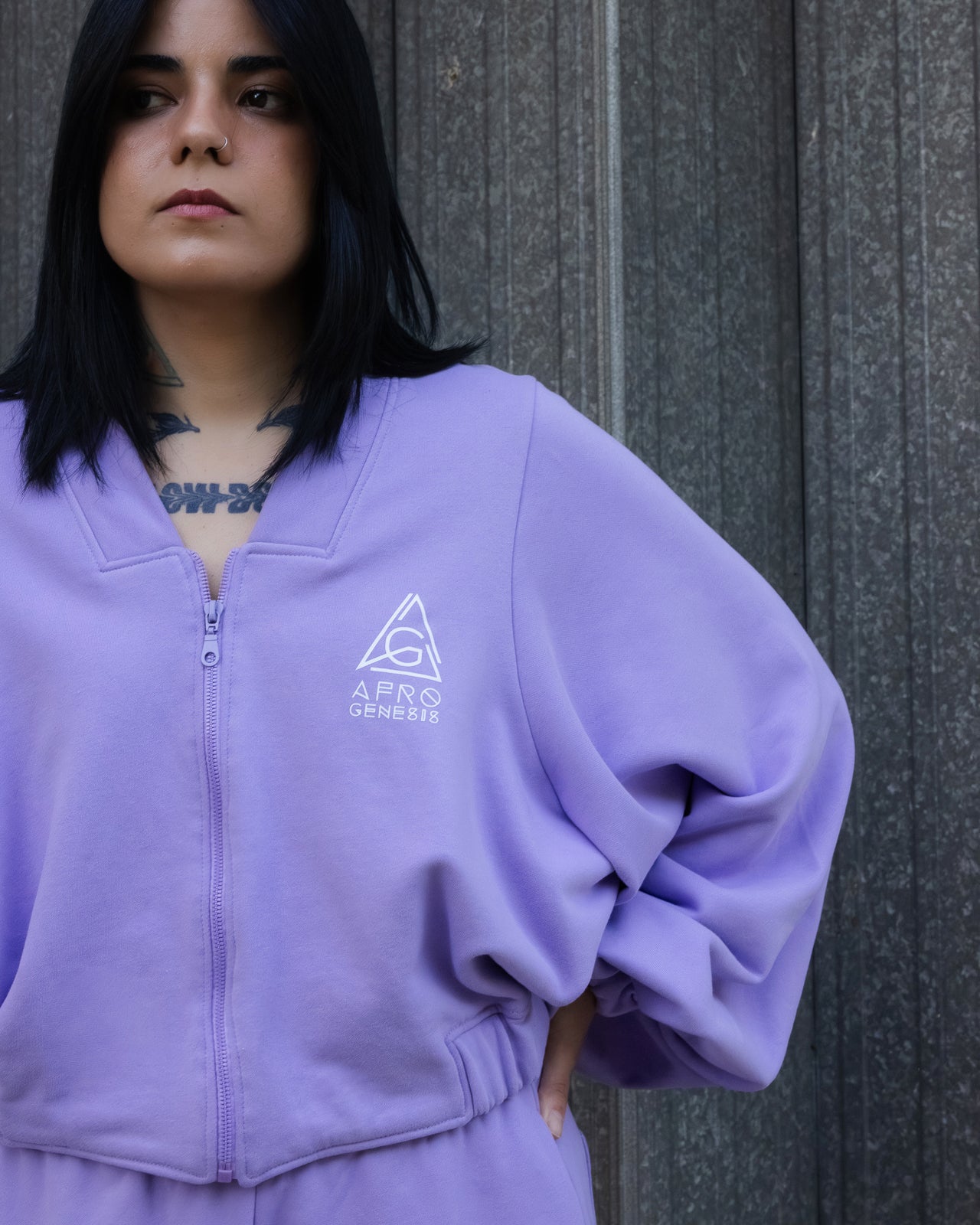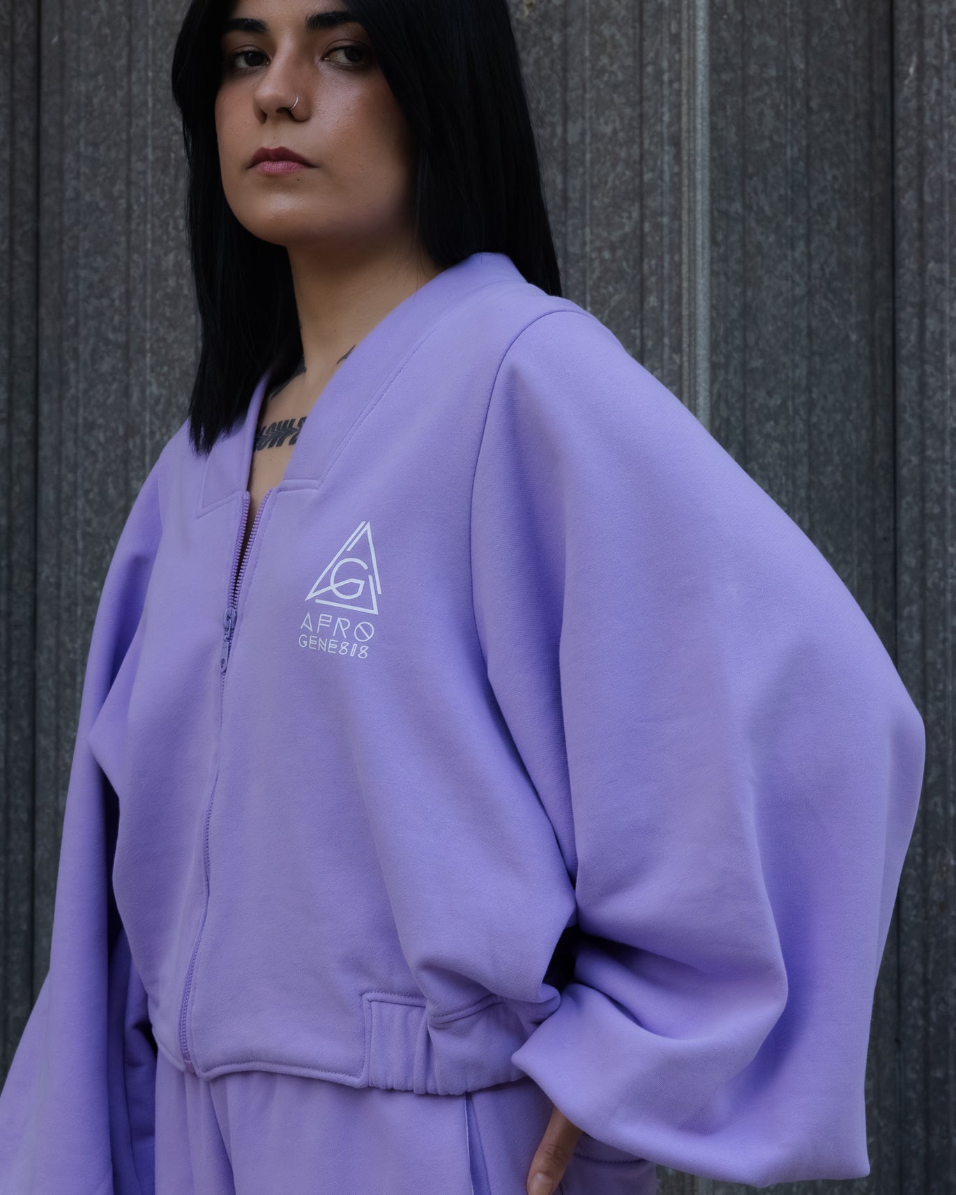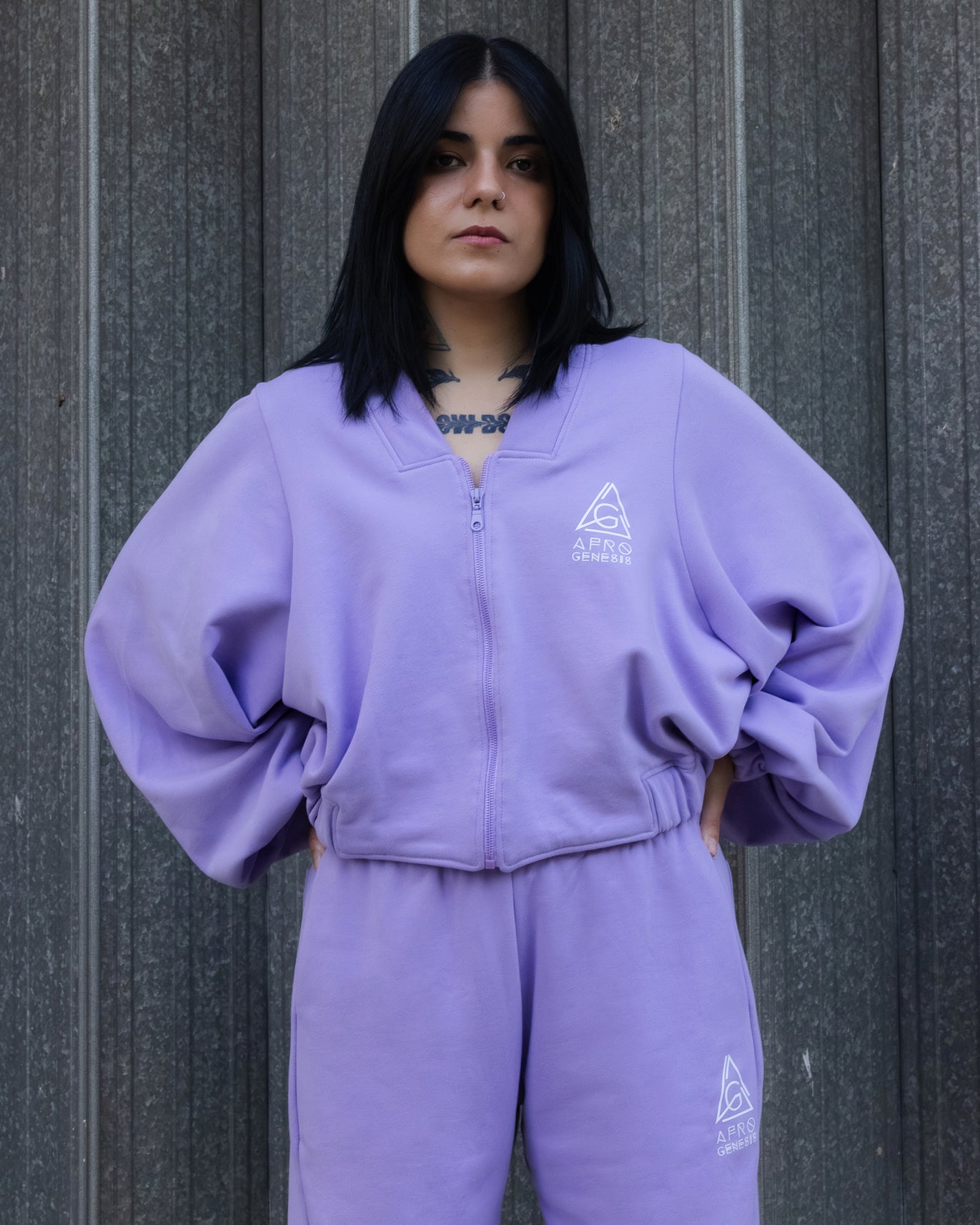 Casaco bomber lilás com gola em V e mangas oversize balão