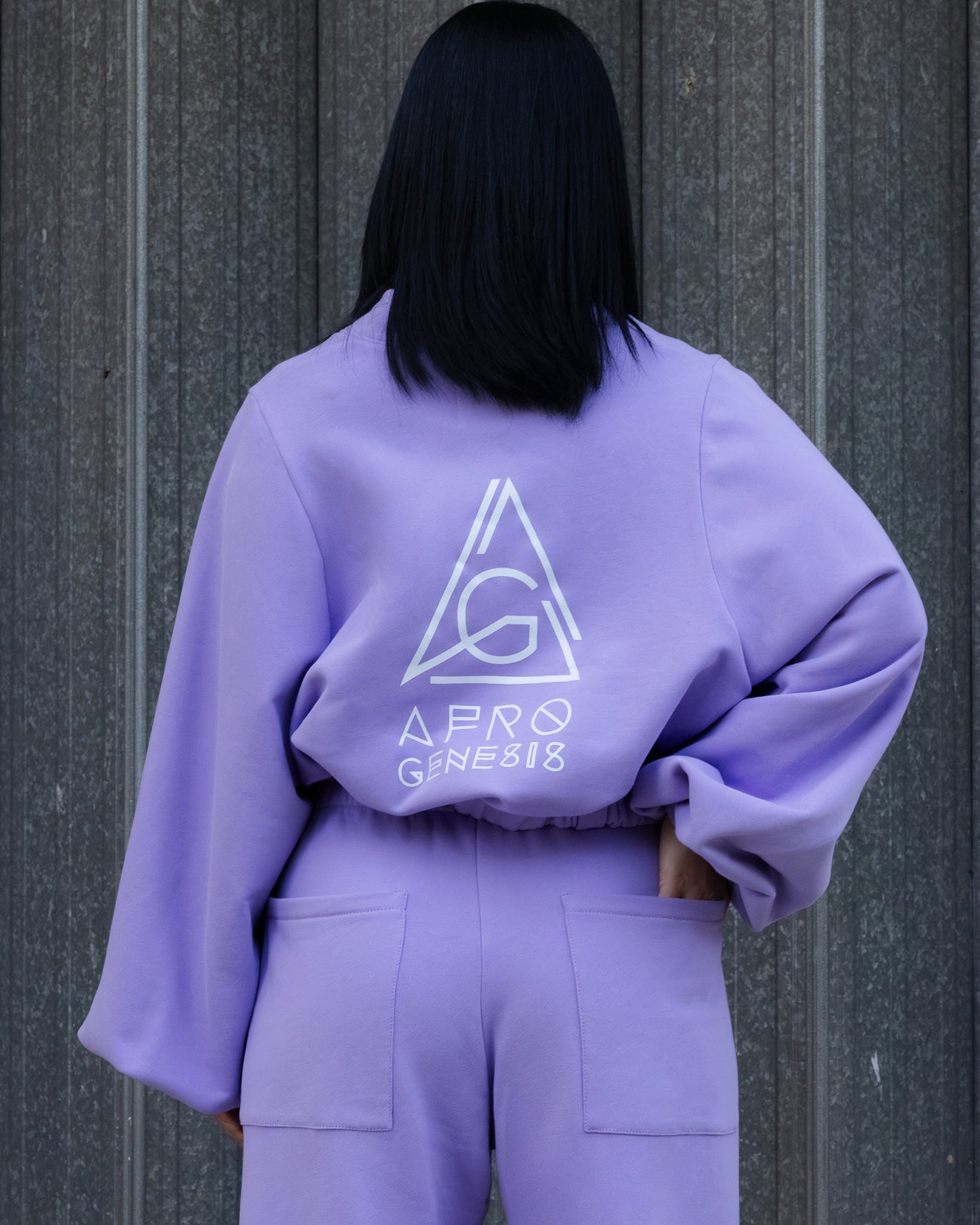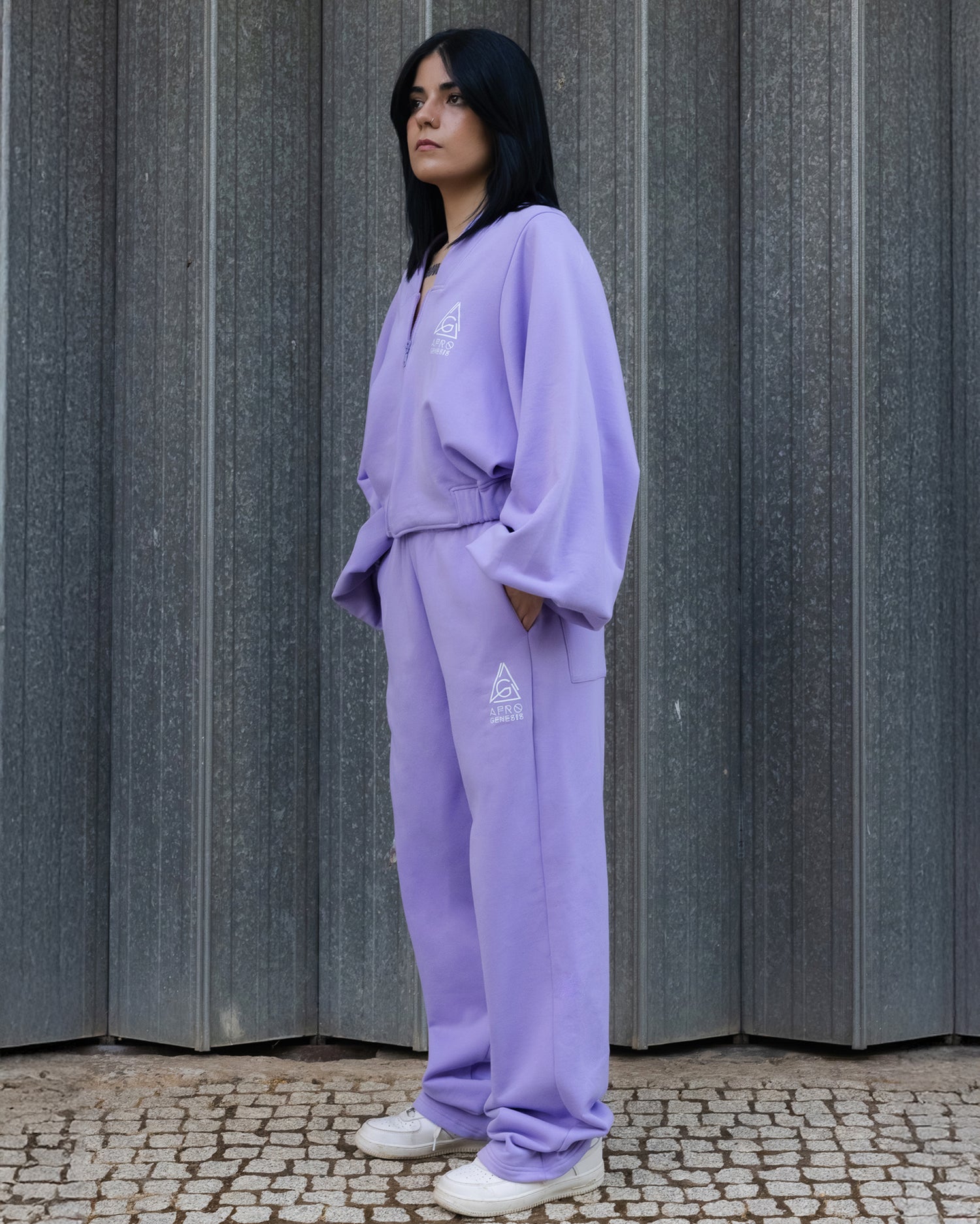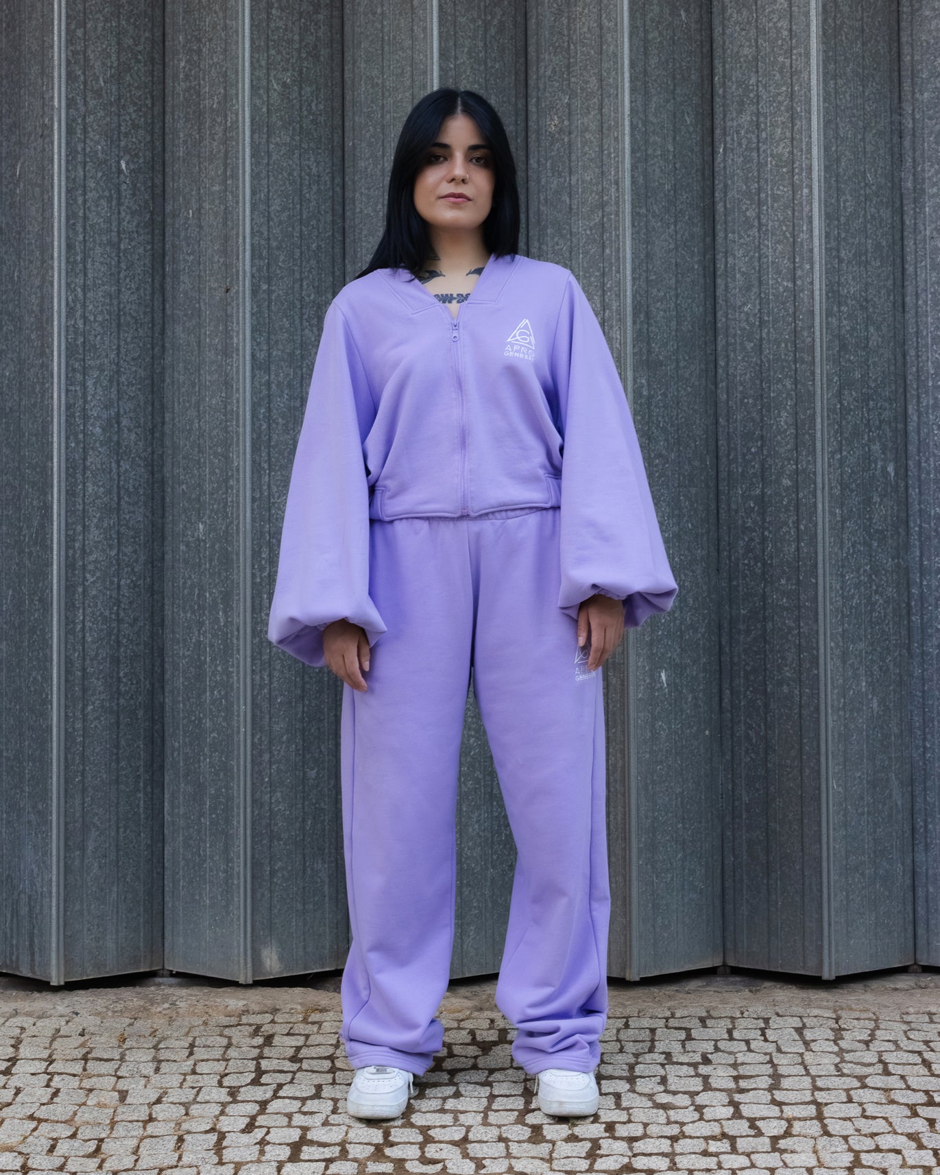 Casaco bomber lilás com gola em V e mangas oversize balão