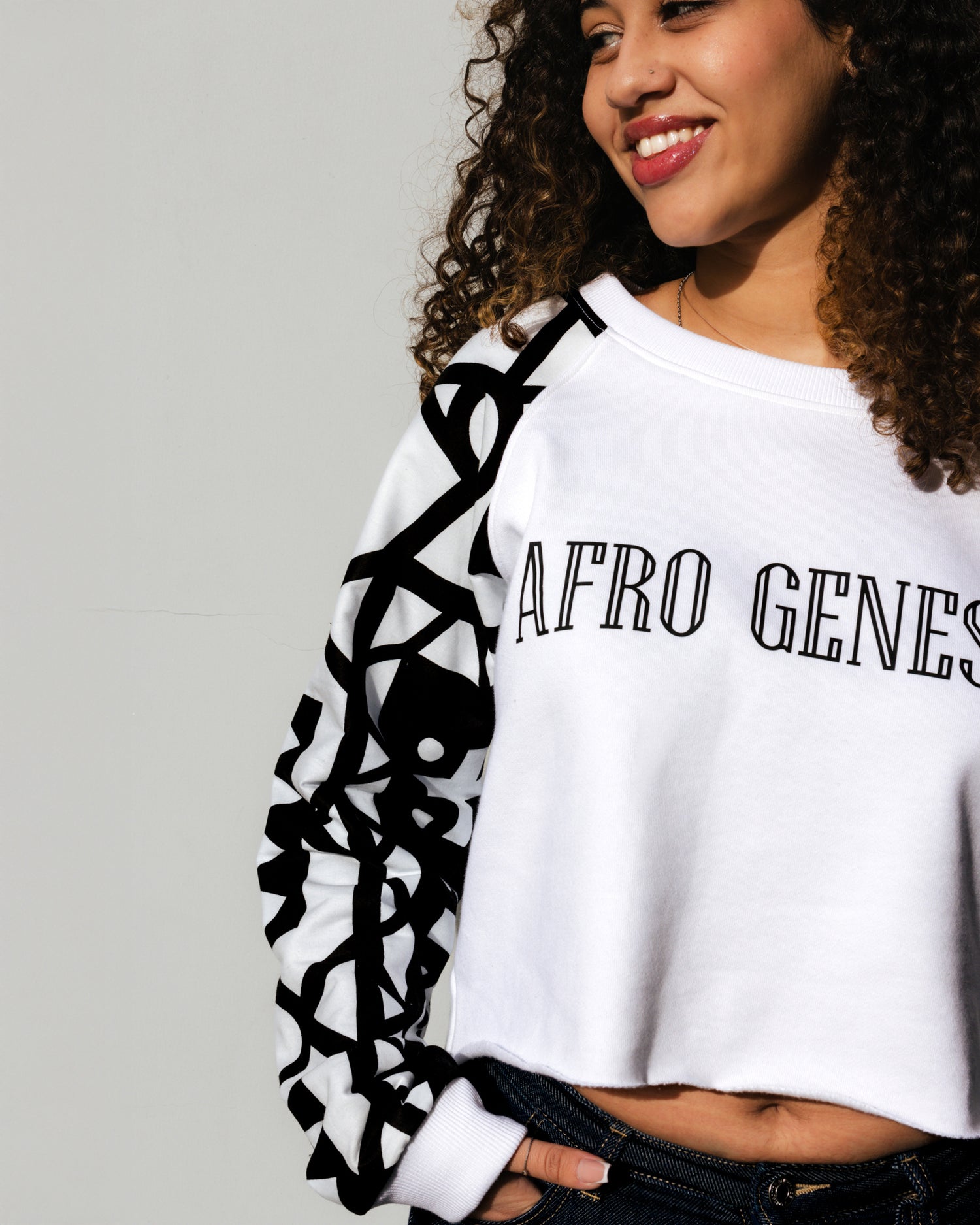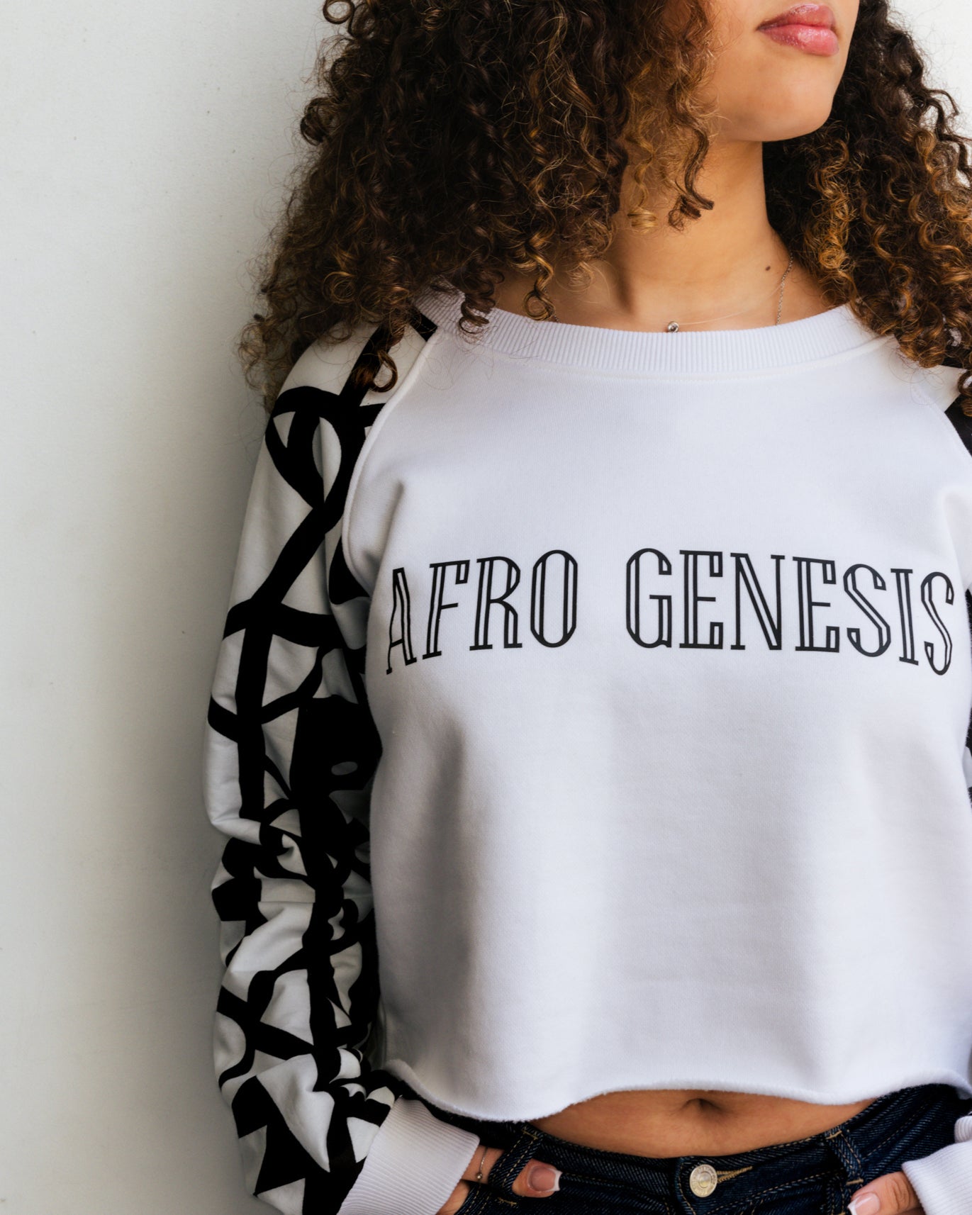 Sweatshirt com mangas raglan em capulana. Veste largo